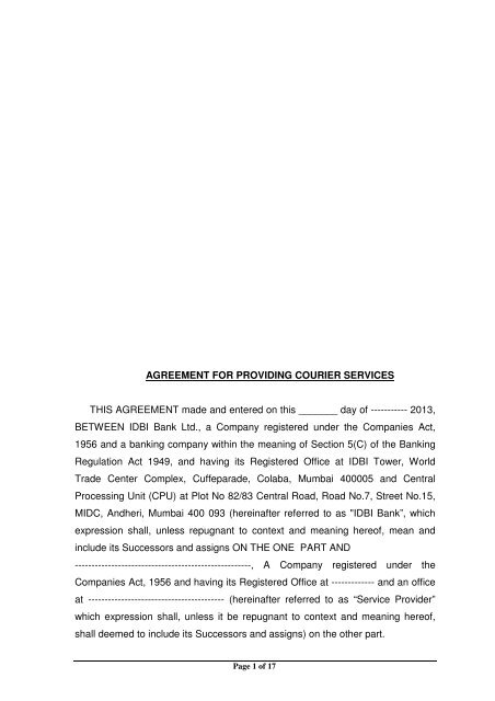 Agreement For Providing Courier Services Idbi Bank